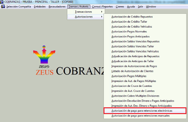 En esta misma pantalla se indicará si se está realizada la autorización de cobro para cobro de clientes o para cobro de tarjeta de crédito.