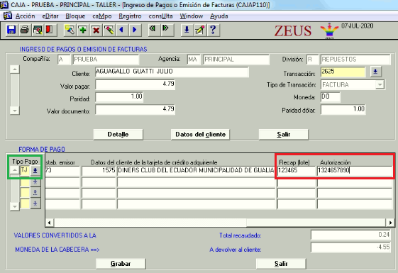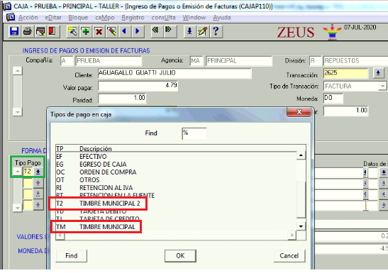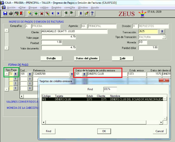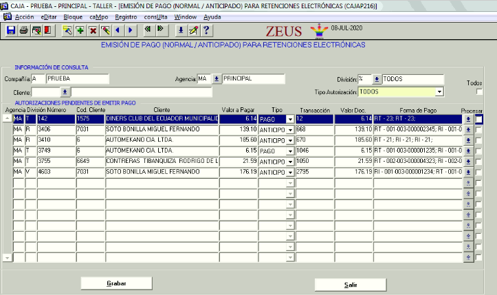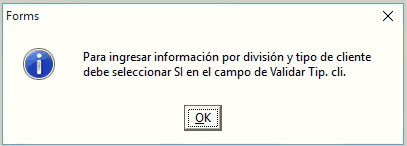 Se valida en la pantalla de ingreso de pago o emisión de factura que en caso de escoger una forma de pago configurada como valida = SI, pueda verificarse que exista la configuración por división y tipo de cliente para formas de pago explicado en el punto anterior.
