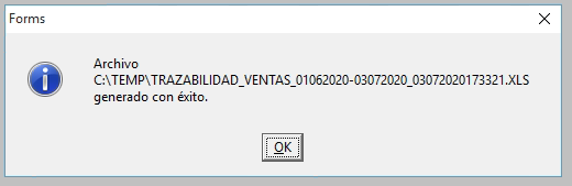 Se debe generar el archivo excel al presionar el botón “Generar excel”, se mostrará la siguiente alerta.