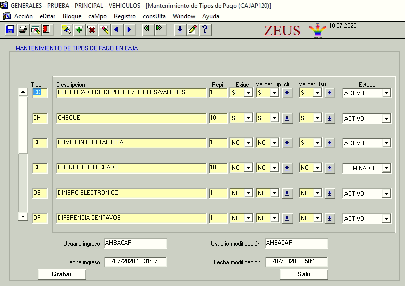 Modulo Generales -- > sistema Caja