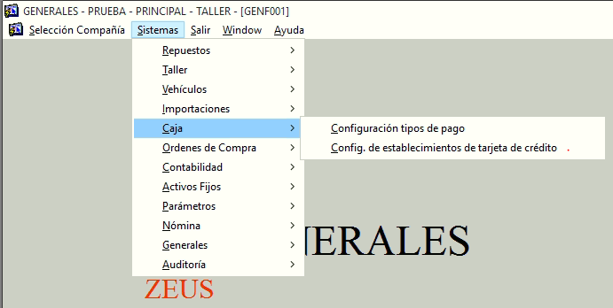 Modulo Generales -> Sistemas -> Caja -> Config. De establecimientos de tarjeta de crédito.