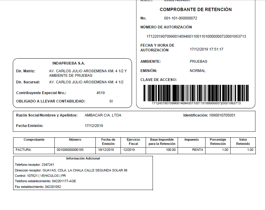 Se podrá visualizar el RIDE del comprobante.