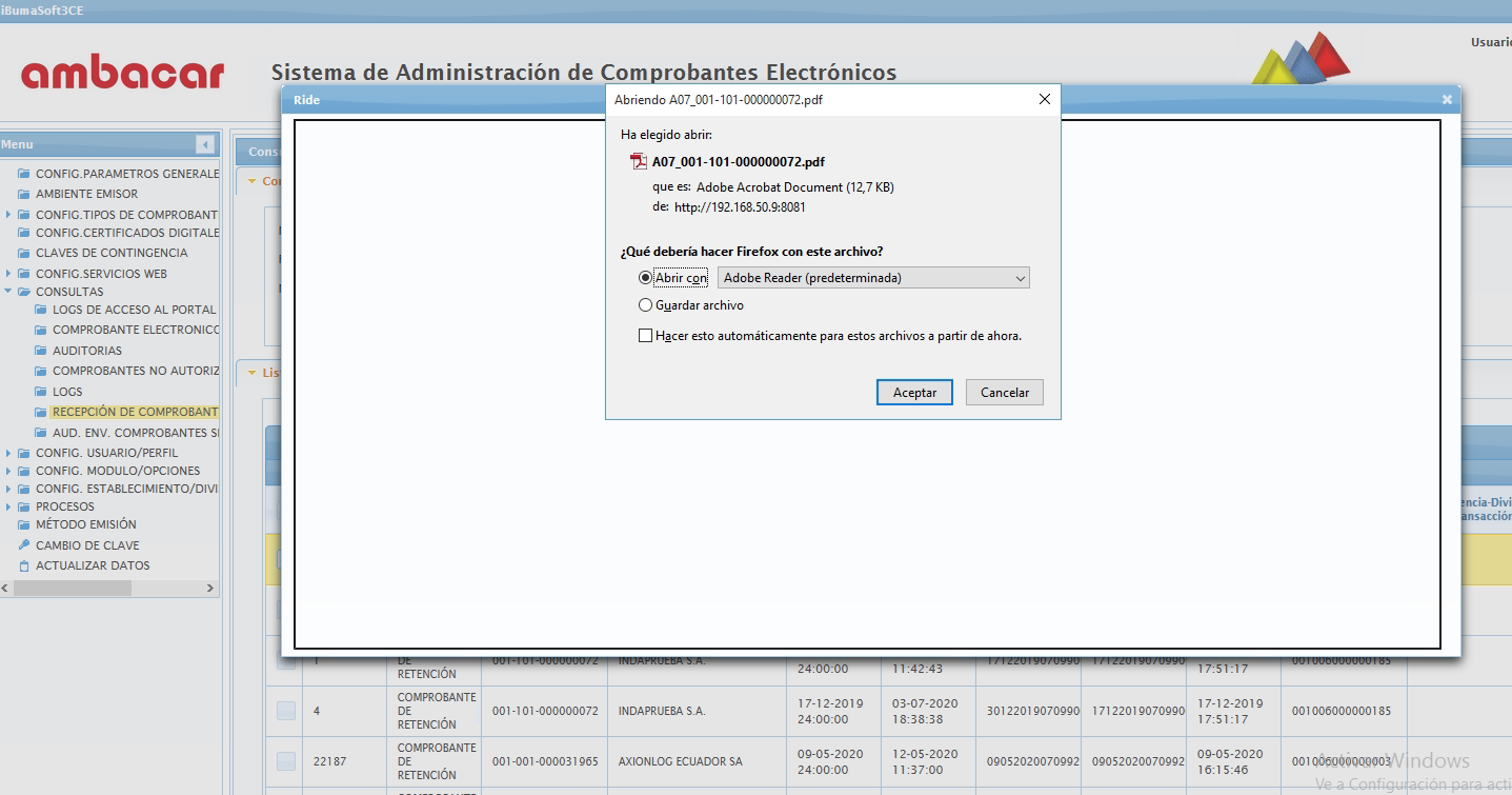 Para acceder a esta opción se debe ingresar al sistema de administración de comprobantes electrónicos, en el menú “Procesos” se debe dar clic a la opción “recepción de comprobantes electrónicos.