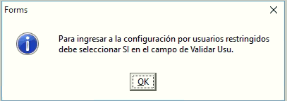 Si el campo Validar Usu. es “NO” entonces al presionar el botón se mostrará la siguiente alerta.