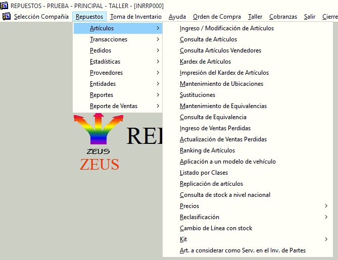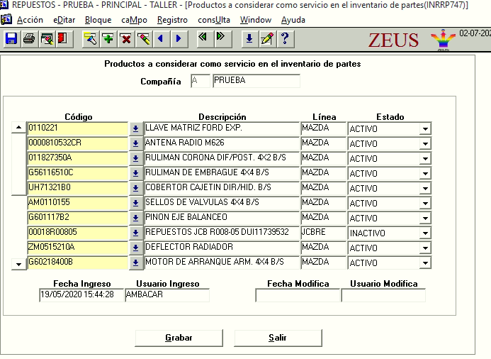 Modulo Repuestos -> Artículos -> Art. A considerar como Serv. En el Inv. de Partes.