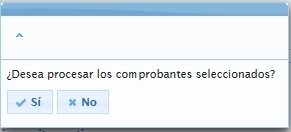 Se presentará una alerta indicando si desea procesar los comprobantes seleccionados.